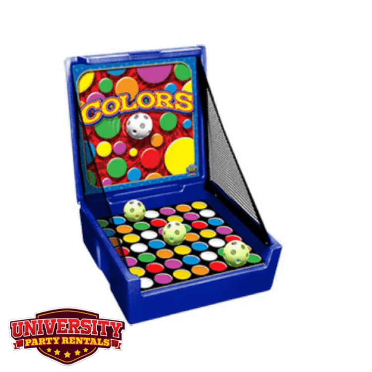 Color Toss is a vibrant and fast-paced test of skill and strategy. It's an eye-catching carnival classic where players toss wiffle balls, aiming for high-value colors to rack up points. With its simple premise and competitive energy, it’s the perfect game to draw a crowd and inspire some friendly rivalries.