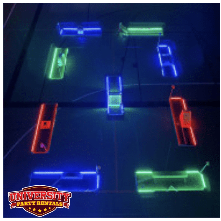 - Blacklight and LED Lighting – To illuminate balls, obstacles, and boundaries