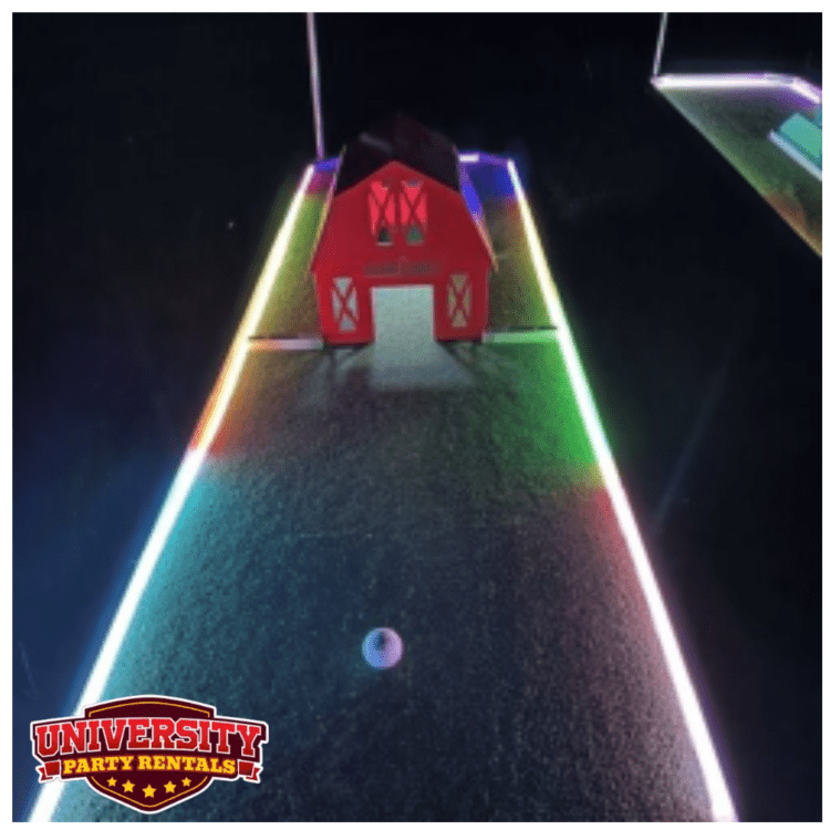 Perfect for campus greens, student centers, or indoor gym spaces, Glow Golf is a hit at both casual hangouts and high energy themed nights.